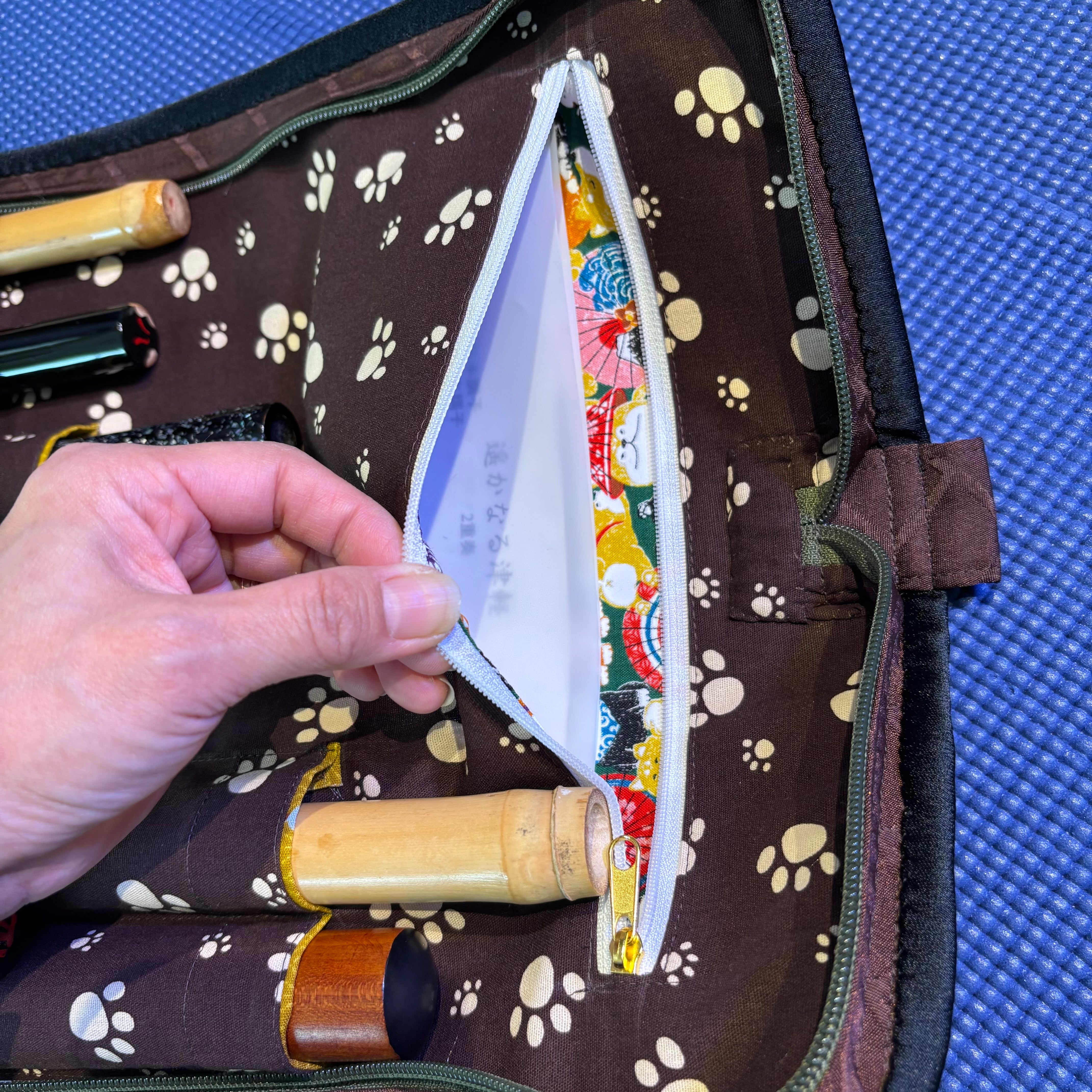 譜面も入れれる10本入れ笛袋!一点モノ♪長さ65センチまで入る笛袋