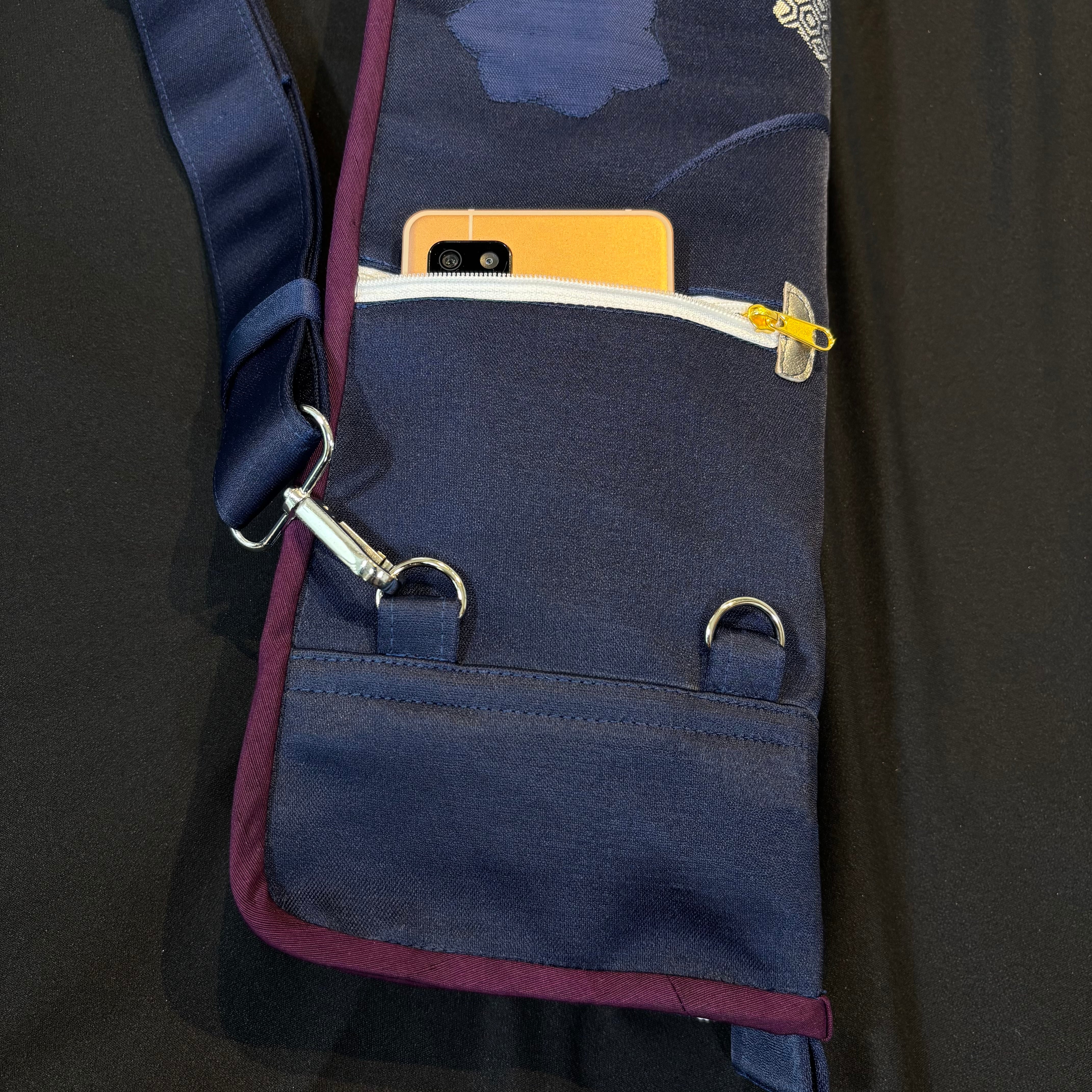 笛のサイズも長さ65cmのものまで入る設計。肩にかけてワンショルダーで持ち運べるオススメの一品。しかも一点もの!!